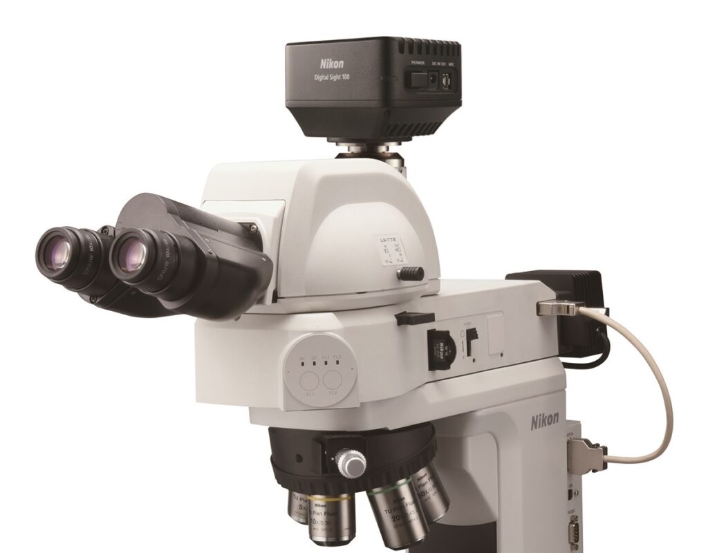 Được sử dụng với kính hiển vi công nghiệp (FN 16), Digital Sight 100 cung cấp độ phân giải 6,5 megapixel (2944 x 2208 pixel), đảm bảo thu được hình ảnh rõ nét các chi tiết cấu trúc nhỏ và thông tin màu sắc phong phú.